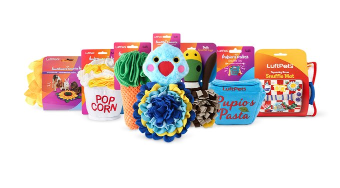 Luftpets snuffle toys bring joy and enrichment to pets of all sizes. From our playful duck and sunflower to our carrot and pasta bowl, each design encourages natural foraging, slows eating, and keeps dogs, cats, rabbits, and small pets happily engaged.