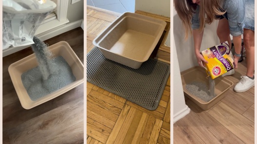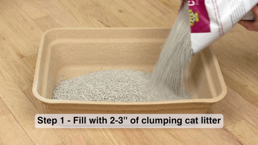 1) Fill disposable cat litter box with 2 - 3 inches of clumping cat litter.