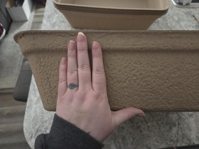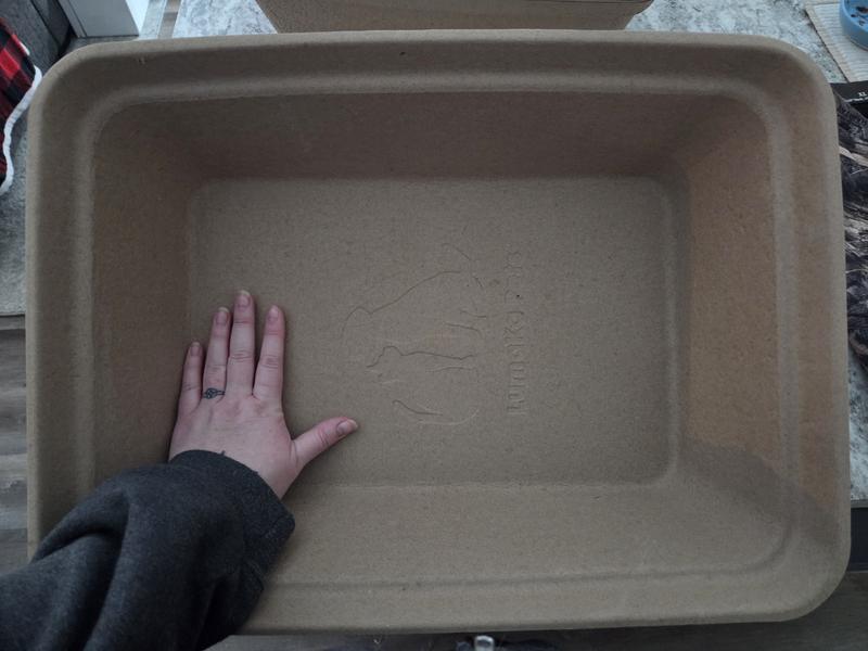 Despite being thick, sturdy and leak-resistant, your disposable litter boxes will made of 100% recycled cardboard and paper products turned into compressed paper pulp.