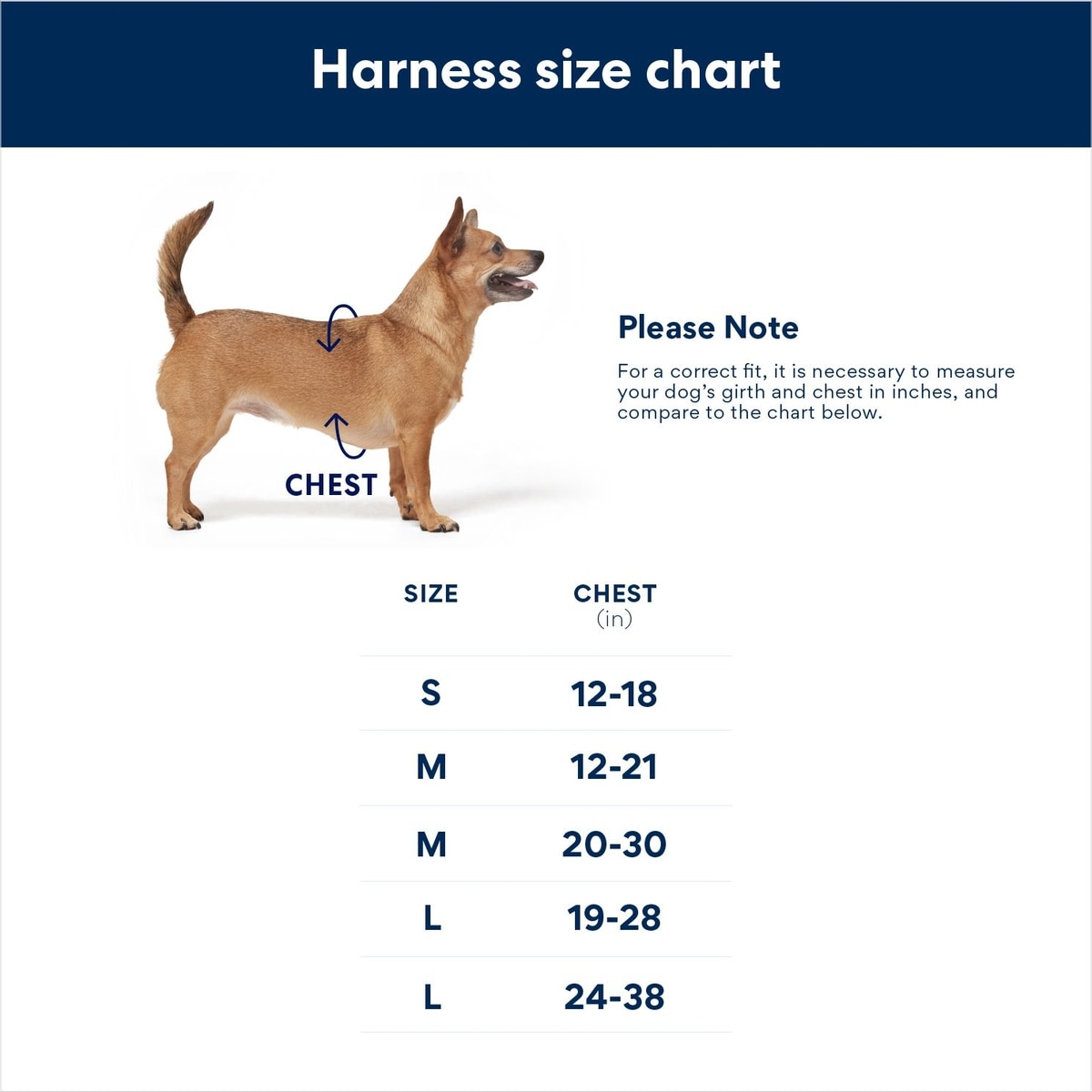| Medium | 19 to 28 inches | 1 inch |