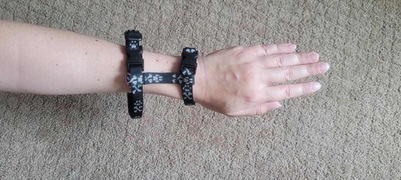 - The harness is made with strong yet soft woven nylon and it’s reinforced with durable bar-tack stitching and turned-under edges for added comfort and protection.