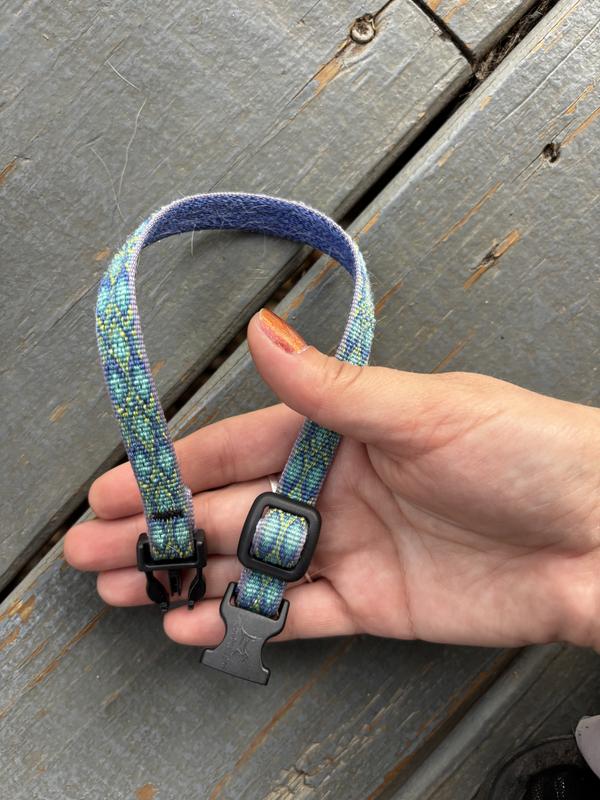 Use the non-slip tri-glide adjuster to tighten or loosen the collar, push the webbing through the slider to create excess material, then pull it through on the other side to adjust. The molded teeth in the adjusters keep it securely in place, ensuring a snug yet comfortable fit.