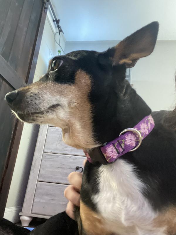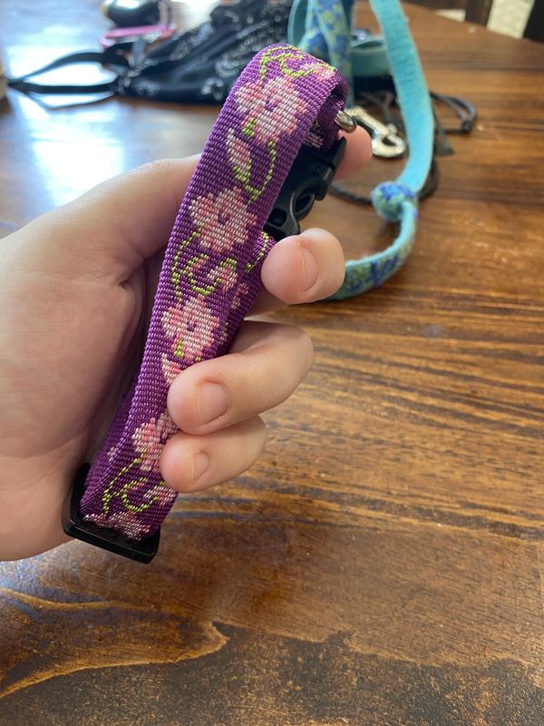 Love this adjustable purple collar with pink flowers. It is just what I was wanting for my doggie girl.