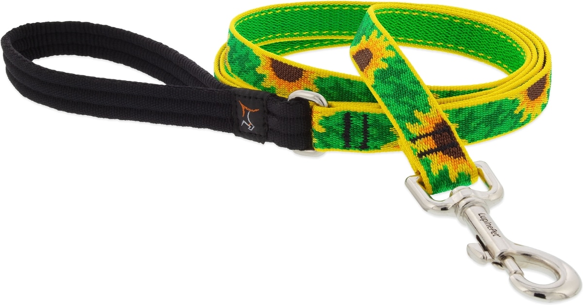 LupinePet Padded Handle Dog Leash, Sunflowers, Regular: 6-ft long, 3/4-in wide