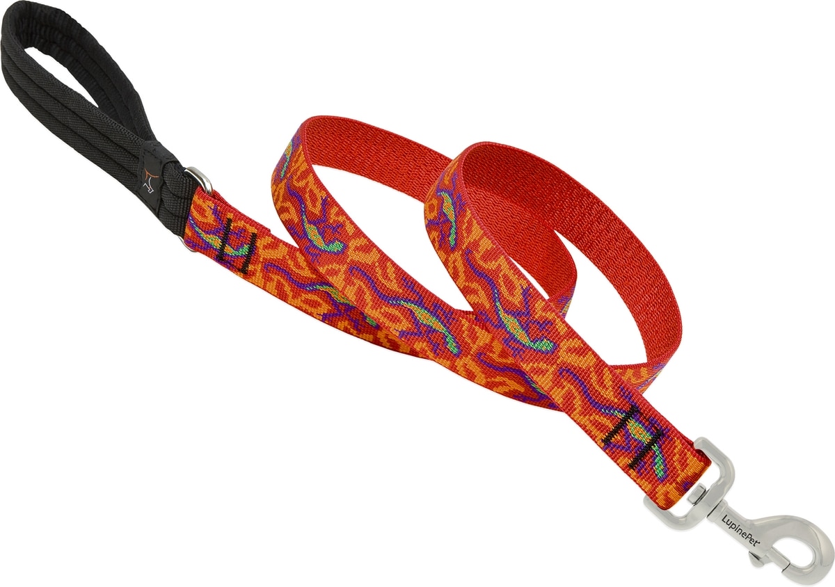 LupinePet Padded Handle Dog Leash, Go Go Gecko, Regular: 6-ft long, 1-in wide
