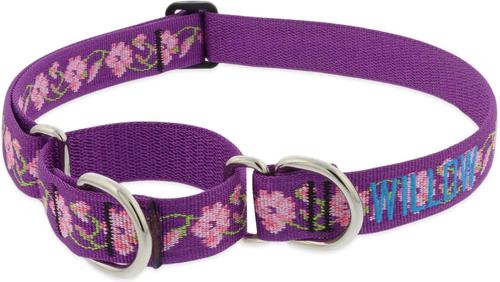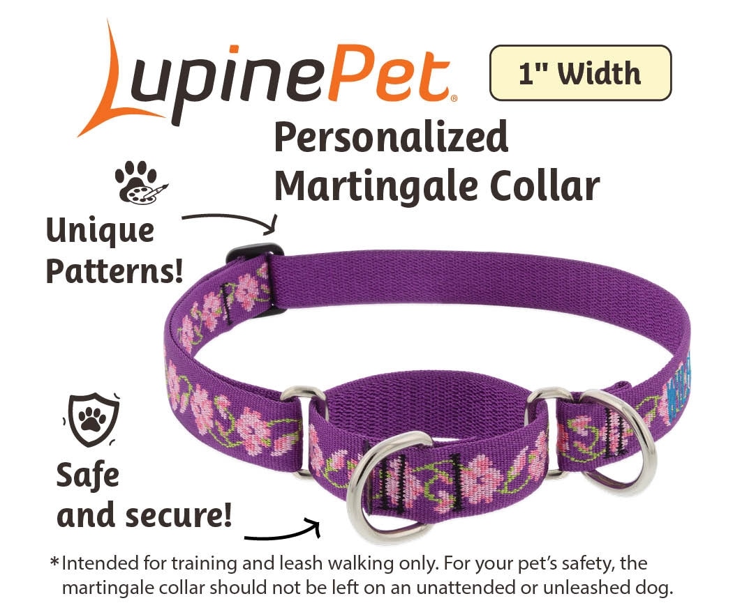 LupinePet Personalized Nature Inspired Original Design Rose Garden Martingale Dog Collar, Large: 15 to 22 in, 1-in wide