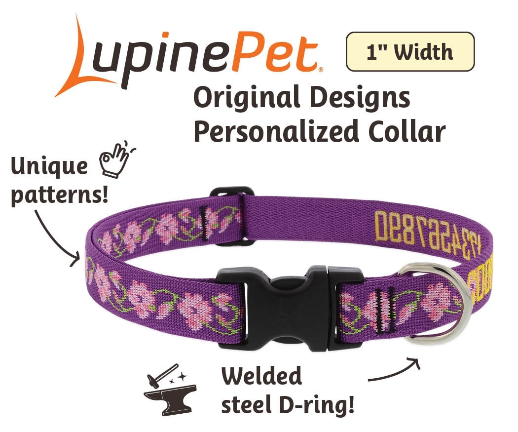 LupinePet Personalized Nature Inspired Original Design Rose Garden Dog Collar, Medium: 12 to 20 in, 1-in wide