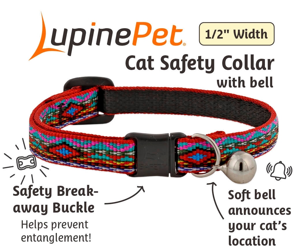 LupinePet Popular Picks Original Design El Paso Breakaway Buckle Safety Cat Collar with Bell, One Size: 8 to 12 in, 1/2-in wide