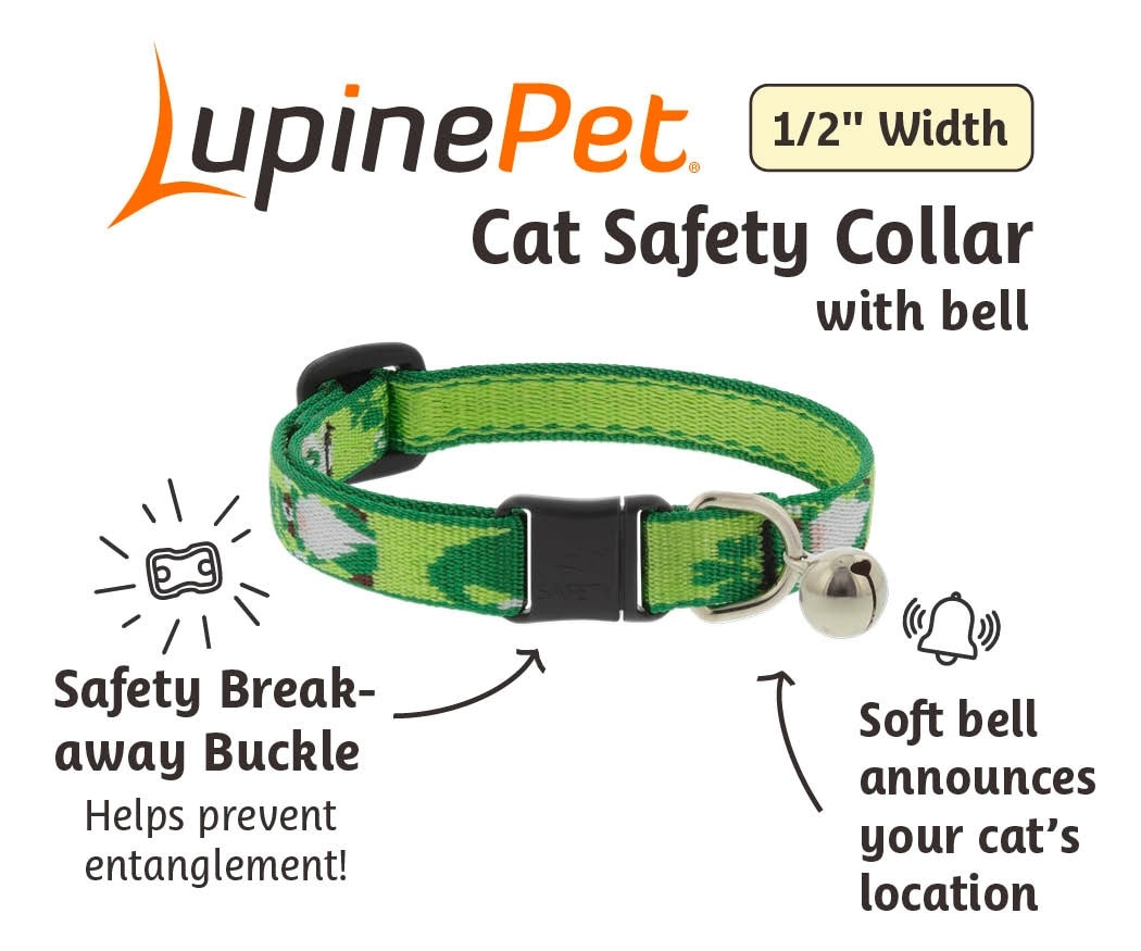 LupinePet St. Patricks Day Adjustable Breakaway Buckle Safety Nylon Cat Collar with Bell, Lucky Gnomes, 8 to 12-in neck, 1/2-in wide