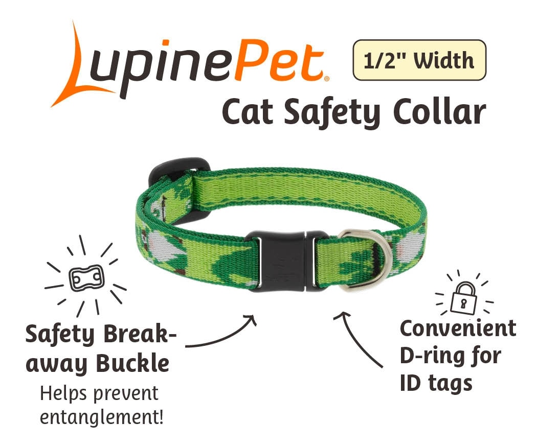 Scratching may cause collar to fray and tighten. Inspect the fit and condition of collar often. Damaged cat collars are covered under our guarantee! guaranteed (even if chewed) means we will replace any Lupine Pet brand dog collars, leashes or pet gear, from your original purchase, that has been accidentally damaged during normal pet-related activities, even chewing accidents. This collar's buckle is designed to help your cat escape entanglement. Due to this very important safety feature, we do not replace lost collars under our guarantee.