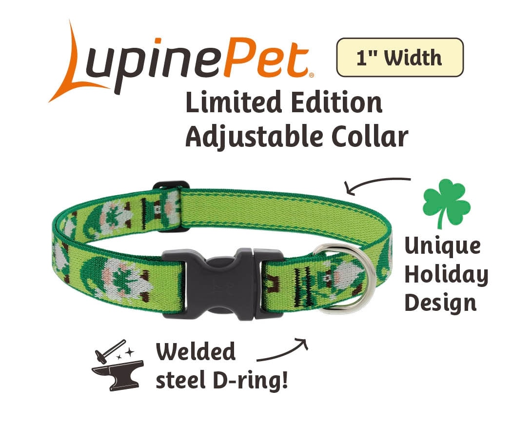 LupinePet St. Patricks Day Adjustable Nylon Dog Collar, Lucky Gnomes, X-Large: 25 to 31-in neck, 1-in wide