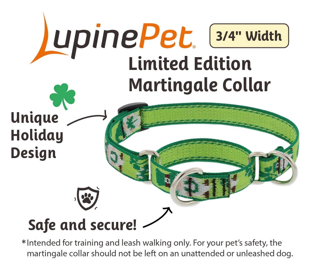 LupinePet St. Patricks Day Adjustable Nylon Martingale Training Dog Collar, Lucky Gnomes, Small: 10 to 14-in neck, 3/4-in wide