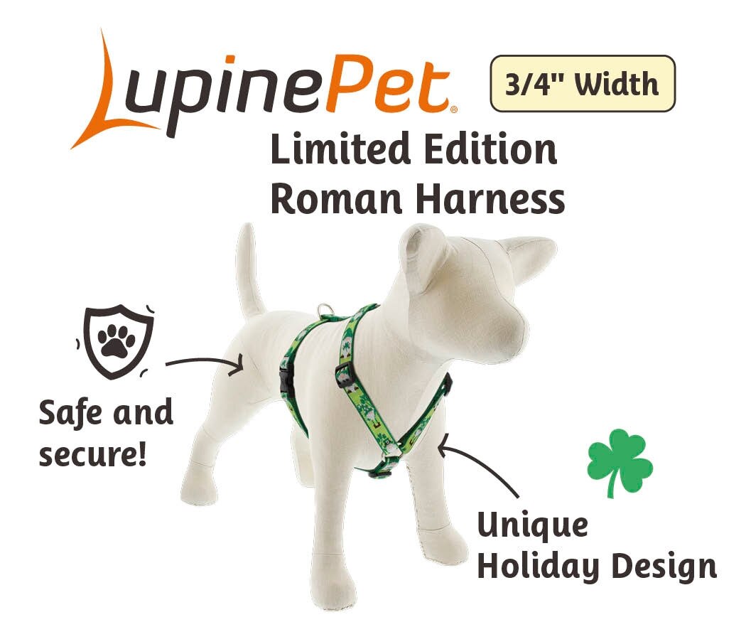 LupinePet St. Patricks Day Adjustable Dog Harness, Lucky Gnomes, Small: 12 to 20-in chest, 3/4-in wide