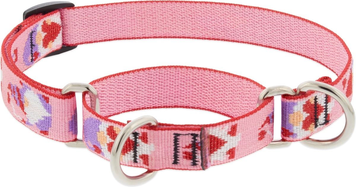 LupinePet Valentine Adjustable Slip-On Nylon Martingale Training Dog Collar, Lovable Gnomes, Small: 10 to 14-in neck, 3/4-in wide