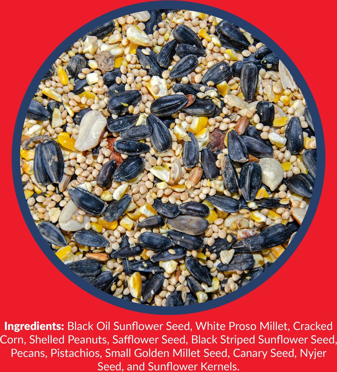 This recipe is formulated for chickadees, cardinals, finches, grosbeaks, nuthatches, juncos, titmice, towhees, and woodpeckers.