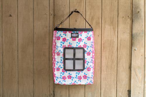 Adjustable hanging strap offers versatile options for hanging on fences, stalls, gates, or trailers.
