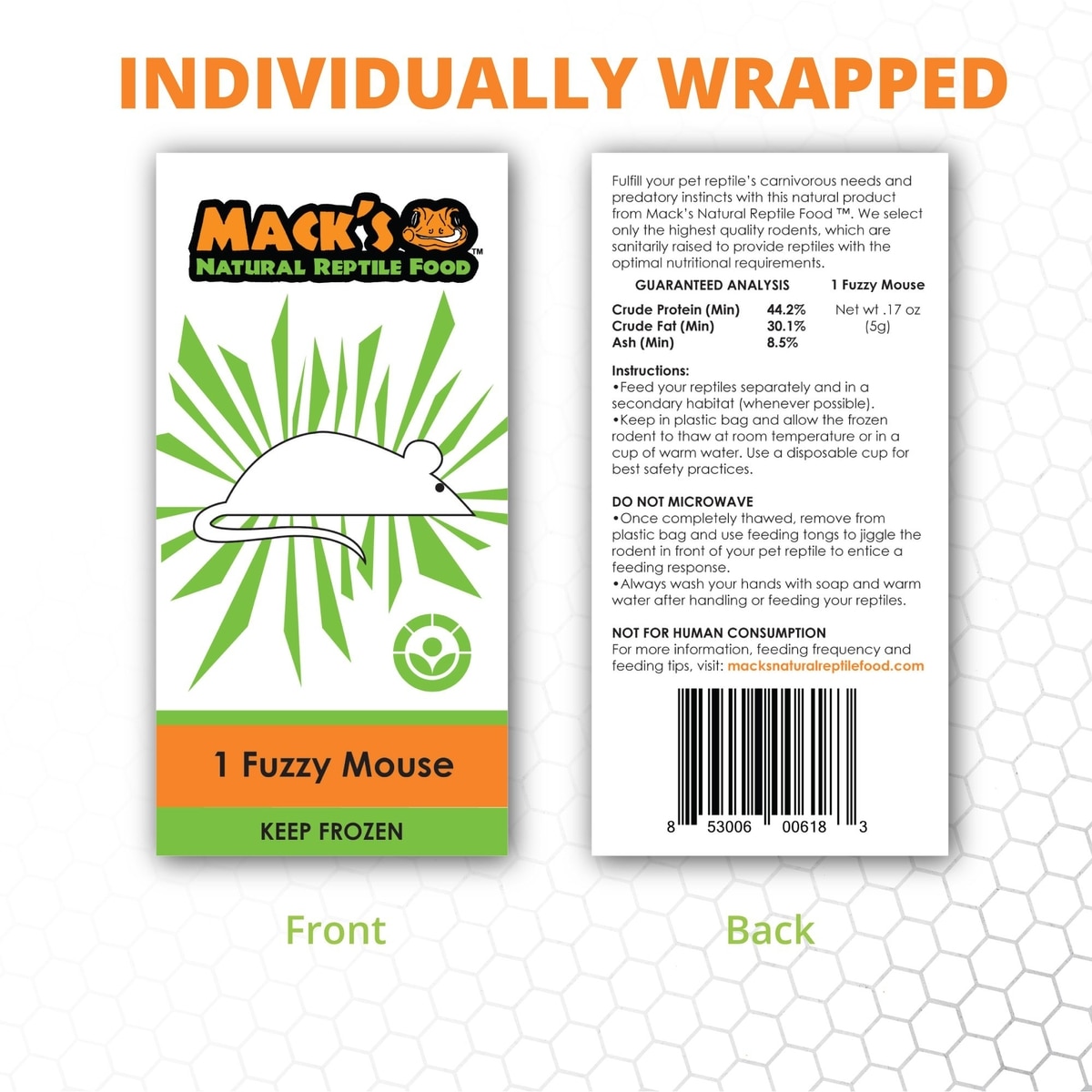 Mack's Natural Reptile Food Fuzzy Mice Frozen Reptile Food, 50 count