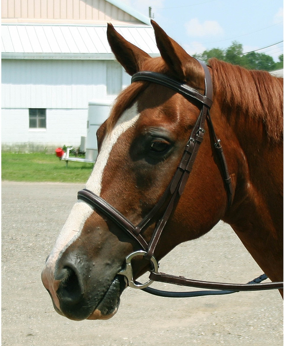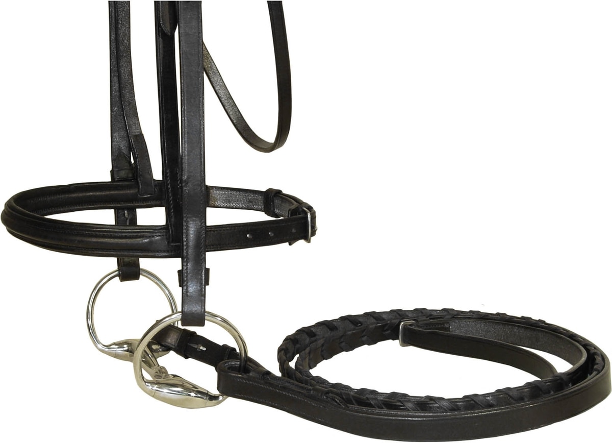 This bridle with laced reins adds a refined and elegant look for everyday riding or shows.