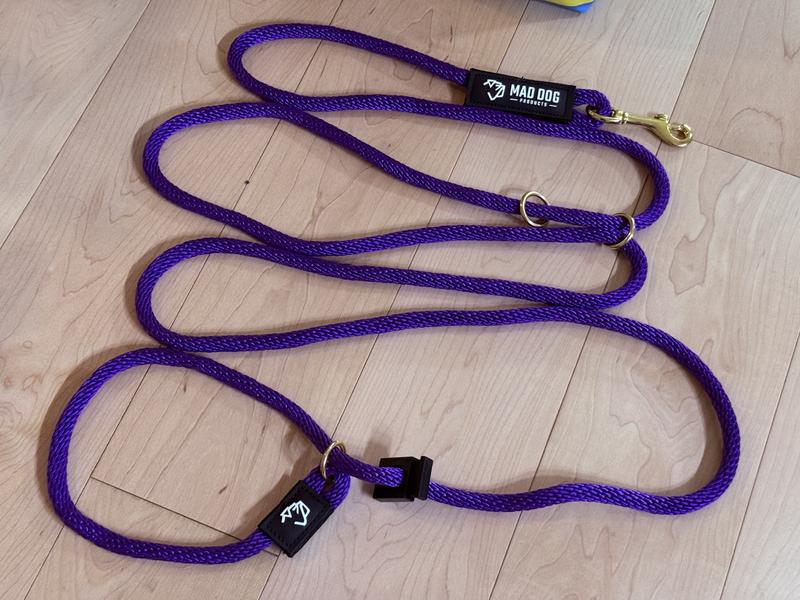 When I first received the product, I realize that I wasn’t sure how to use it. I went on the Mad Dog website and they had a great video tutorial. I’m a pretty experienced dog person and have used many different leashes.. It would’ve been easier if they had included directions with the product. That said, it’s a totally first class leash. The material is my favorite color, purple, very soft, extremely well-made, and all the attachments are great quality. It’s definitely a hands-free leash and it works beautifully