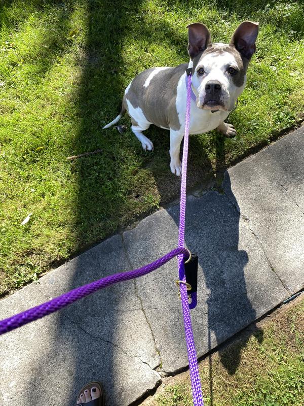 Before this leash even arrived I knew I was going to be in love with it. And I am! And so is my dog. We have been on the hunt for a high quality slip leash and this is it. I would call it more of an all purpose leash because you can do more with it than just a slip lead. The color is vibrant. The quality of the leash is incredibly well made. It’s smooth and almost has this iridescence to it. I love the little locking mechanism to fasten the leash on your dog. It’s also a 10 ft leash so it’s great if you want something longer. We are still figuring out the hands free part but we are getting there. It’s definitely not hard to figure out. I definitely feel safe using this leash because the quality is just so great, even for my strong bully girl. Ella approves!!