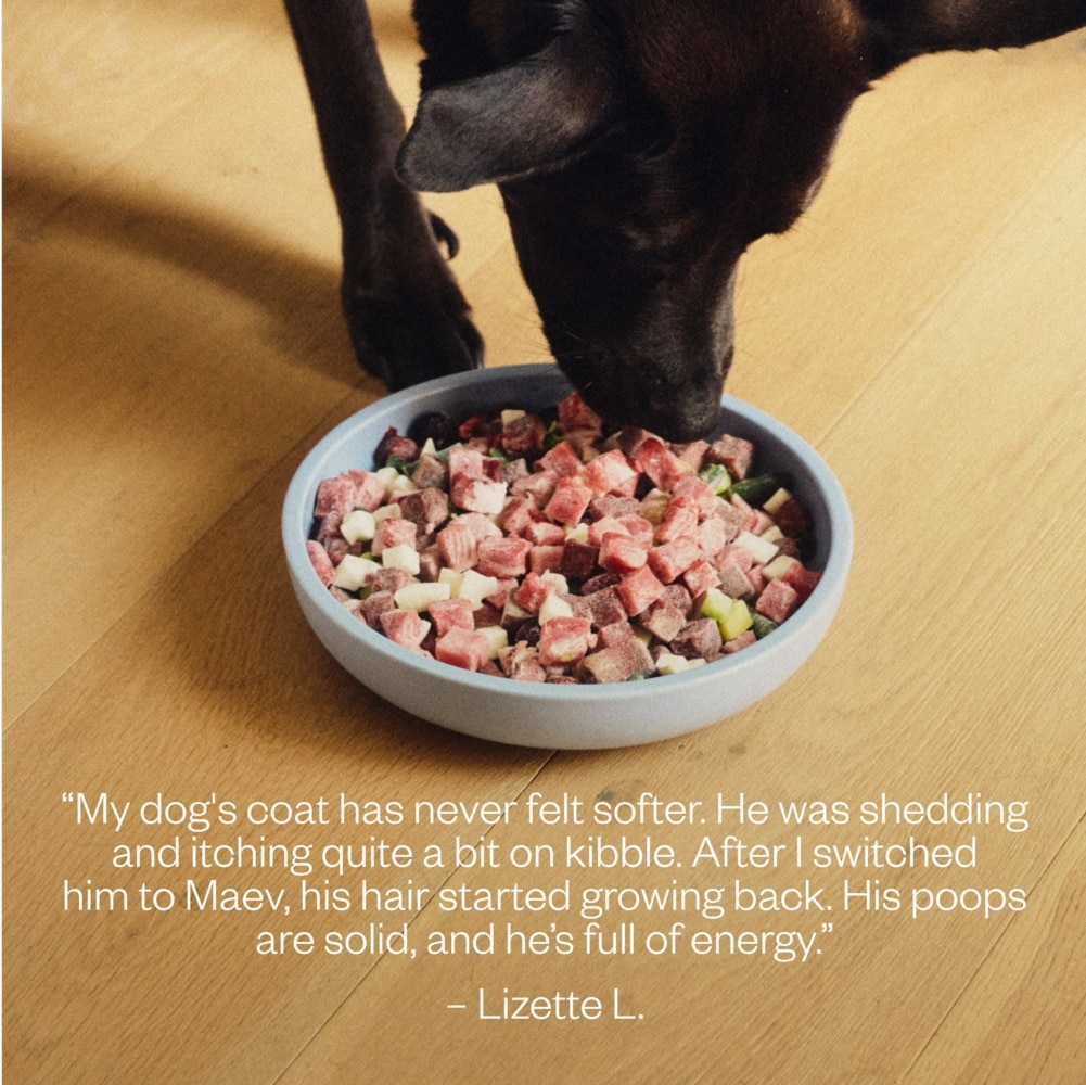 Maev is obsessed with radically improving your dog’s life so you can enjoy more time together. That's why their human-grade raw dog food is formulated by PhD veterinary nutritionists, using real ingredients you can name just by looking.