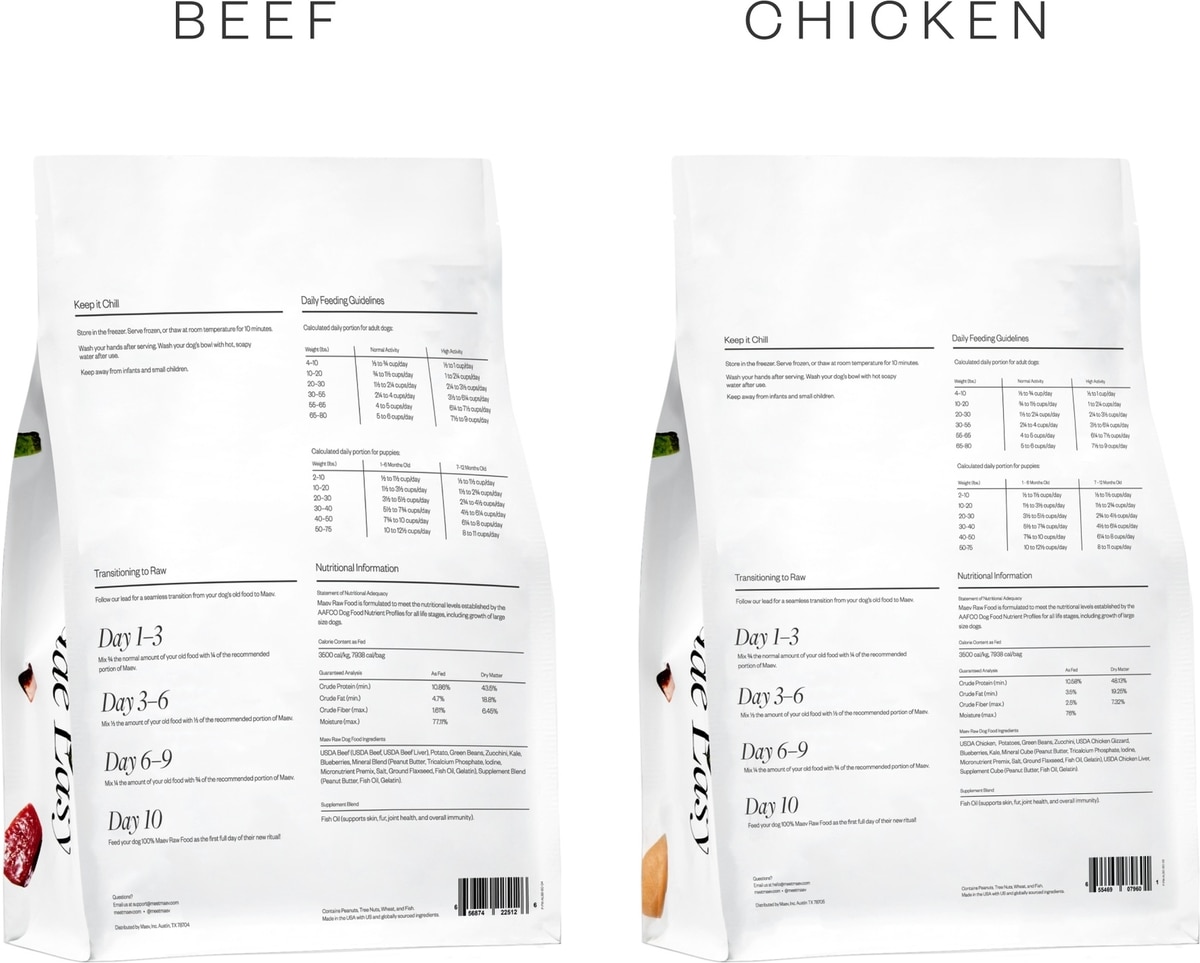 Maev is a human-grade raw dog food specially formulated to support your dog’s biology and fill common nutritional gaps. Plus, it’s made right here in the USA.