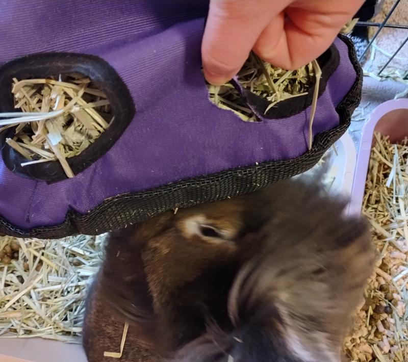 It says it's for rabbits but it's falling apart after less than a week of use. Also, the holes are too small for them to easily pull out hay strands (I use Oxbow timothy and Grandpa's Best mini bales and neither works well). I would cut the hole larger but I'm worried about them ingesting bits of the canvas, it's too easy for them to chew through. This one is a miss for us.