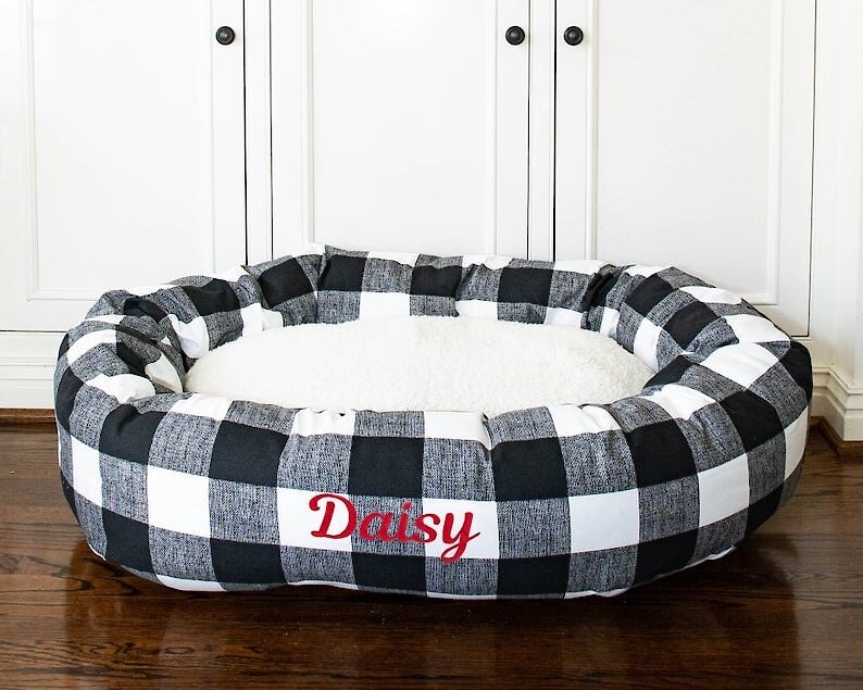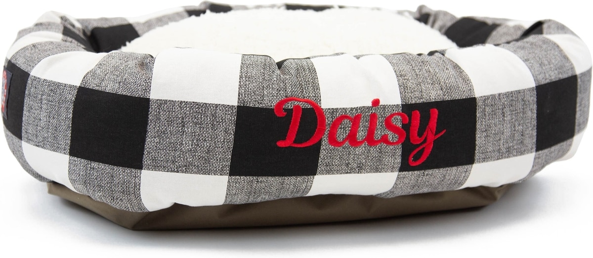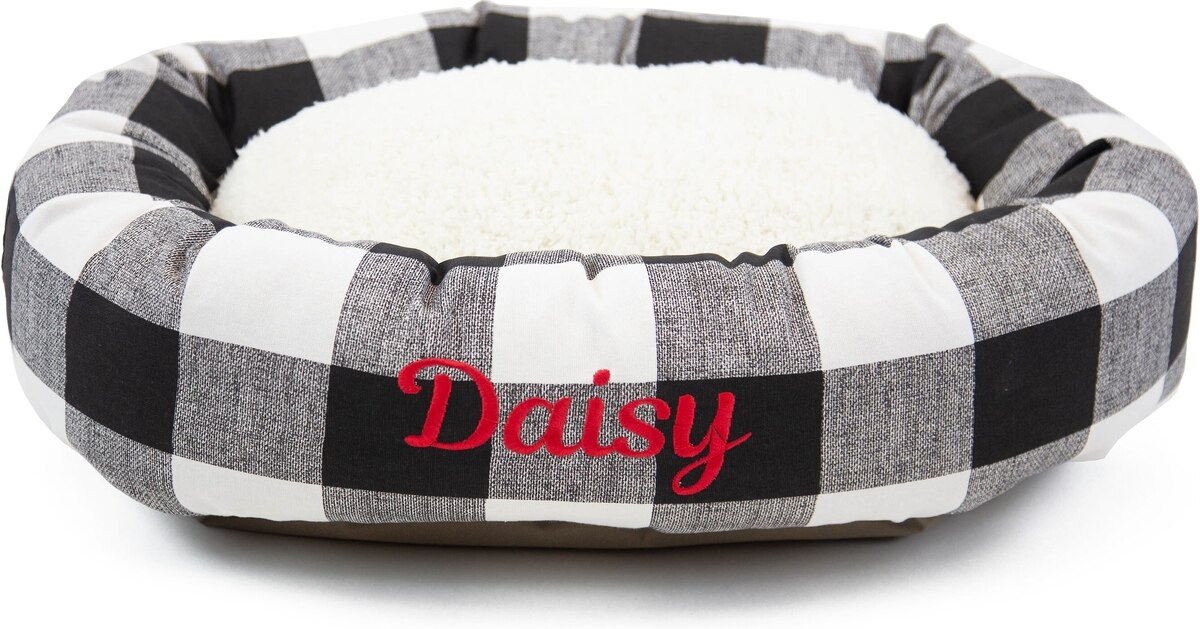 Majestic Pet Anderson Check Sherpa Personalized Bagel Cat & Dog Bed, Black, Large