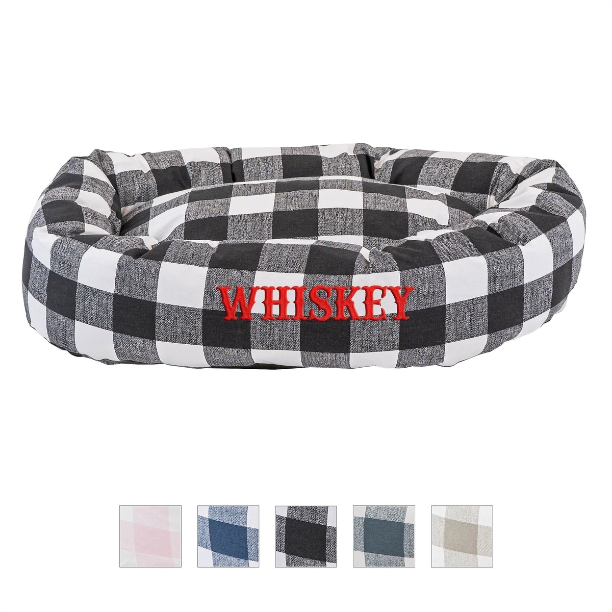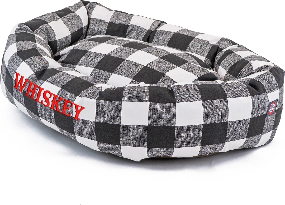 Majestic Pet Anderson Check Personalized Bagel Cat & Dog Bed, Black, Large