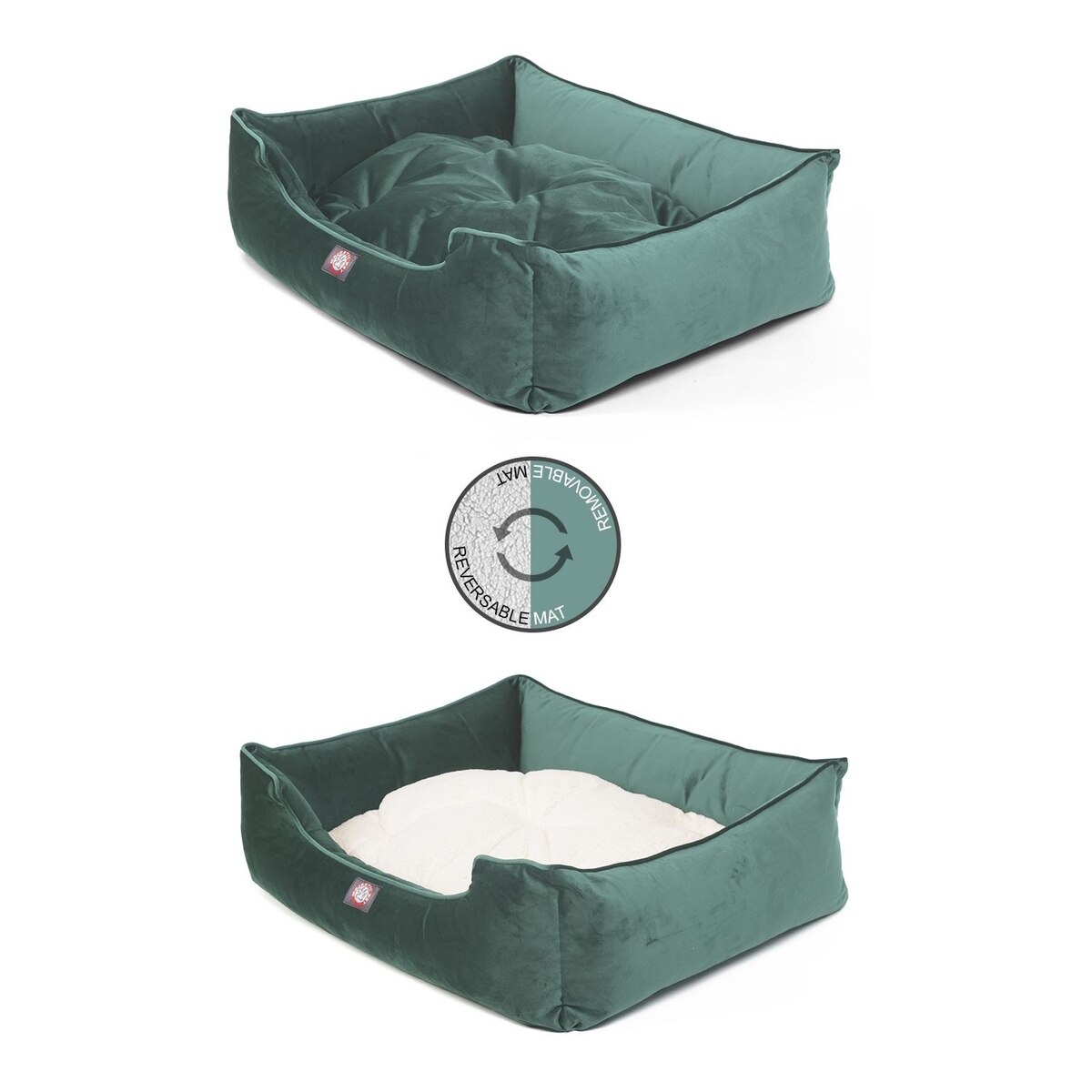 Majestic Pet Contemp Lounge Velvet Bolster Dog Bed with Removable Cover, Turquoise, Small