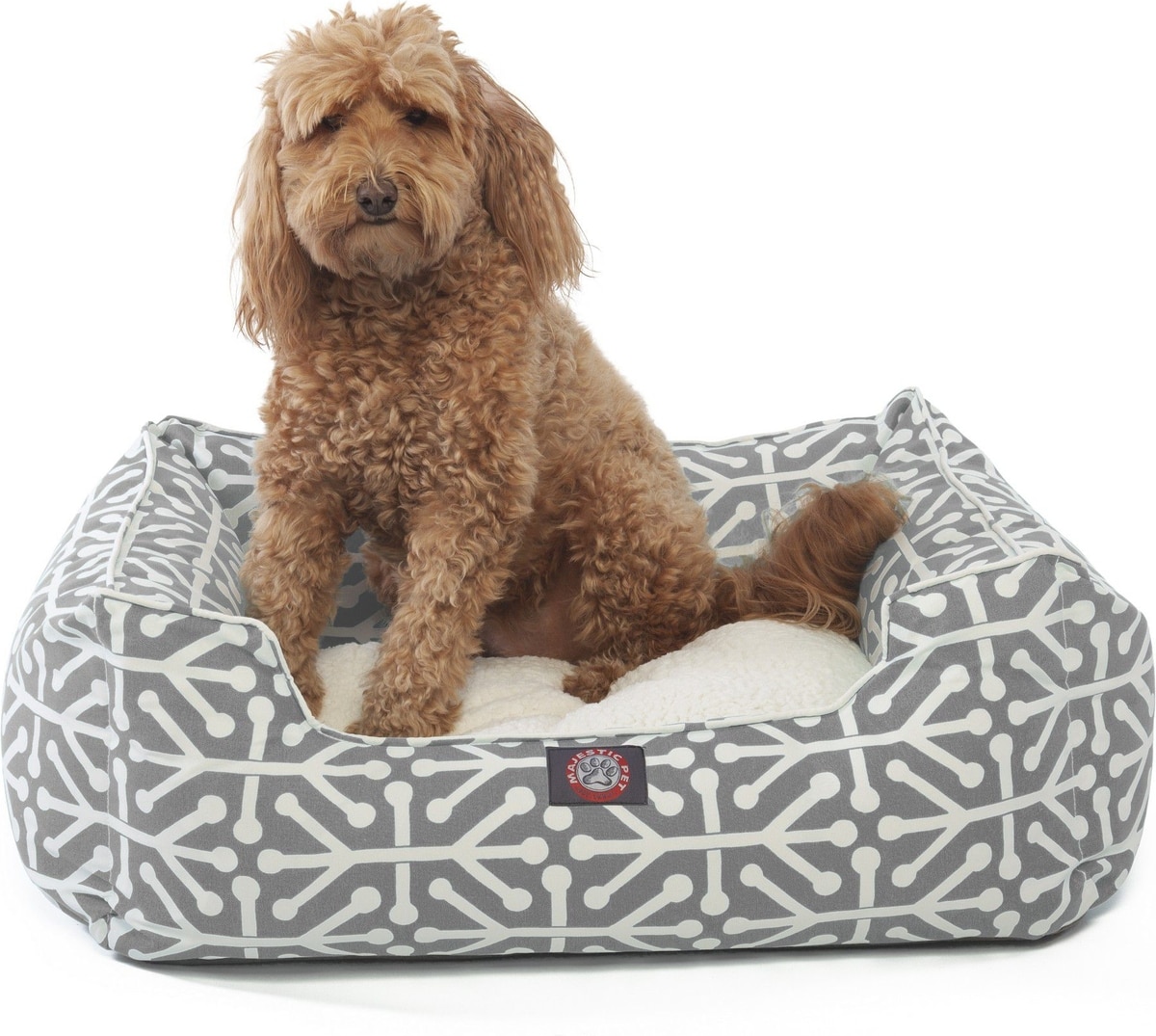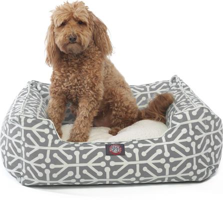 Majestic Pet Contemporary Lounge Aruba Bolster Dog Bed with Removable Cover, Gray, Large