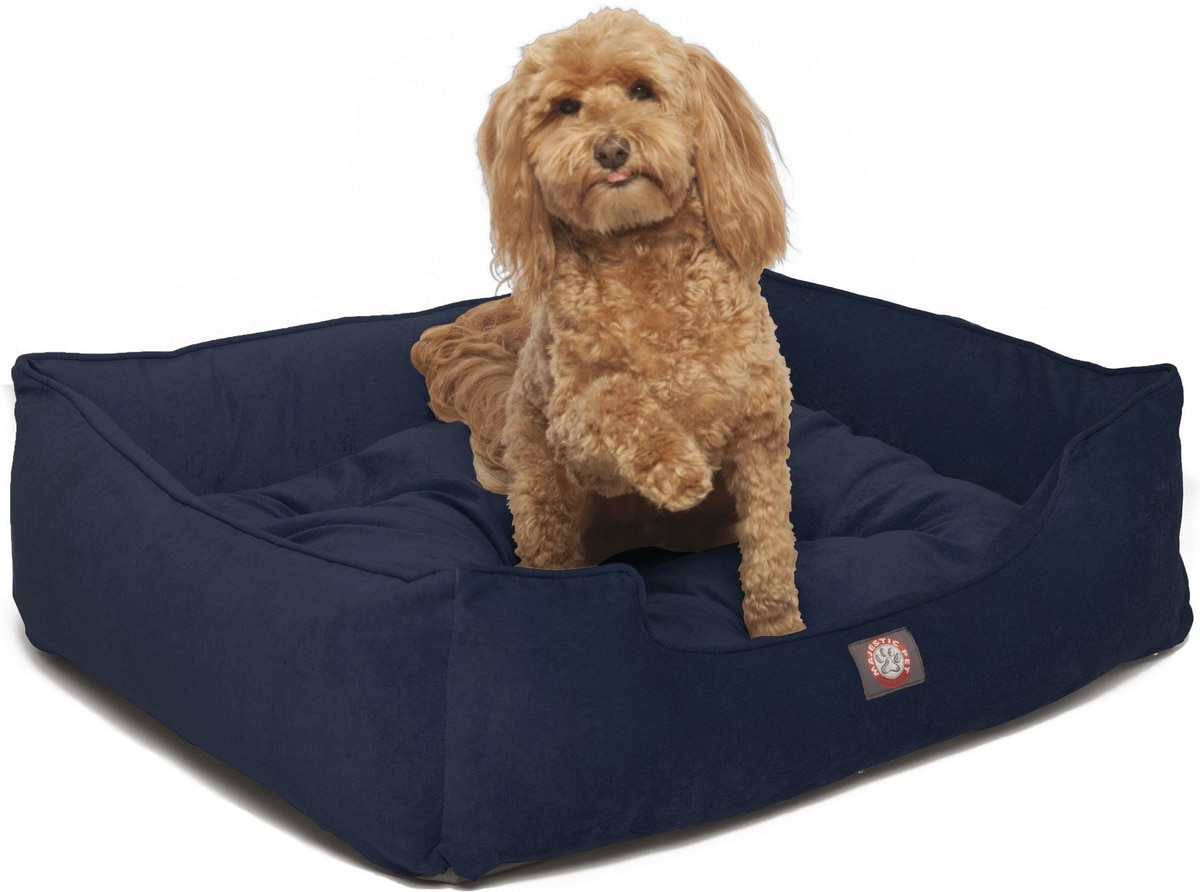 Majestic Pet Contemporary Lounge Villa Bolster Dog Bed with Removable Cover, Medium, Navy
