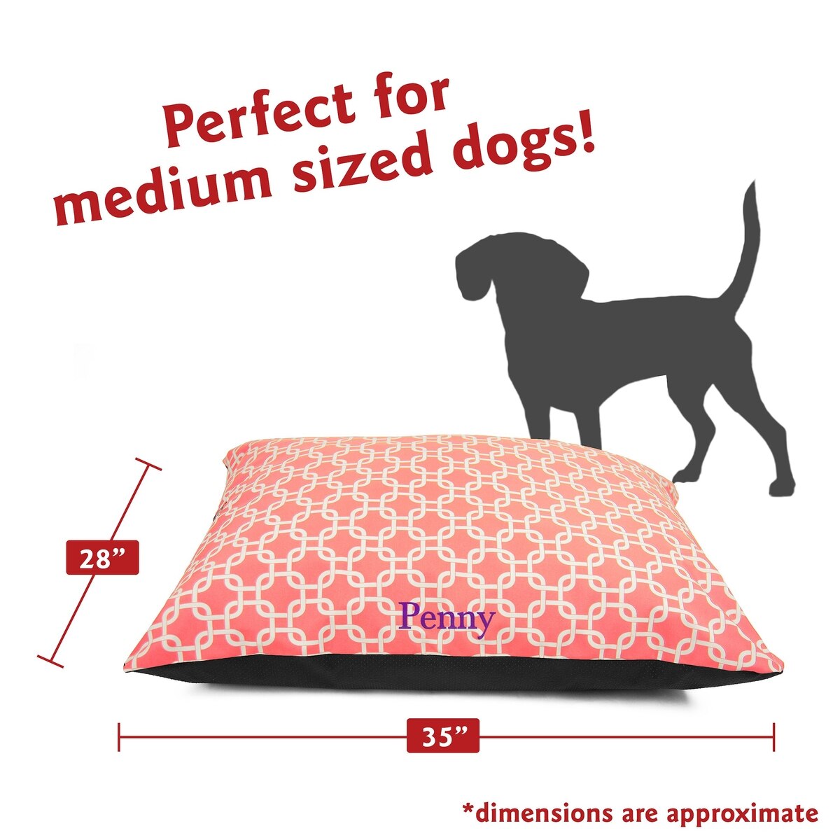 Majestic Pet Links Personalized Pillow Cat & Dog Bed, Coral, Small/Medium