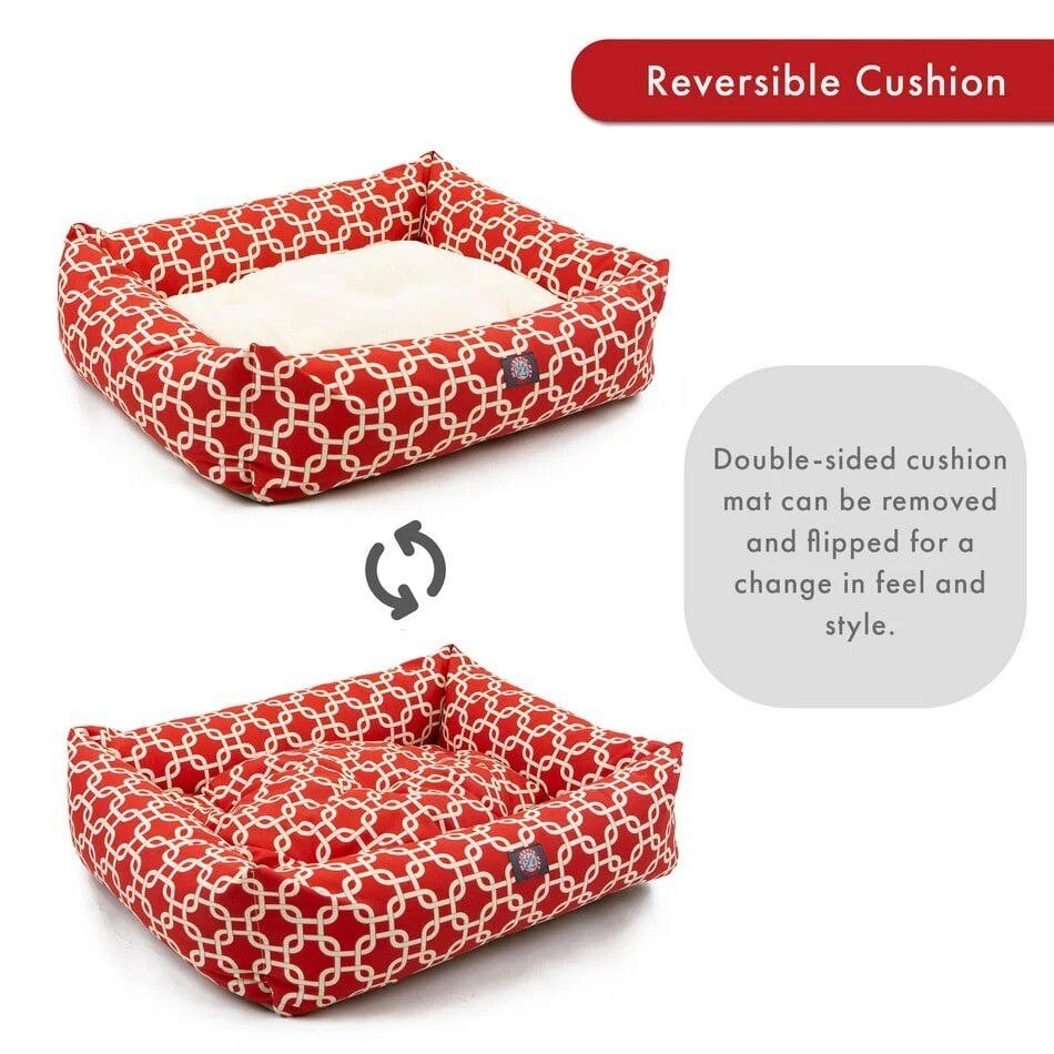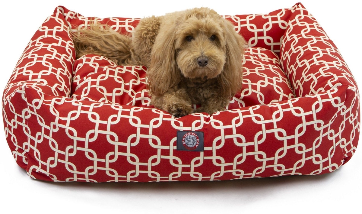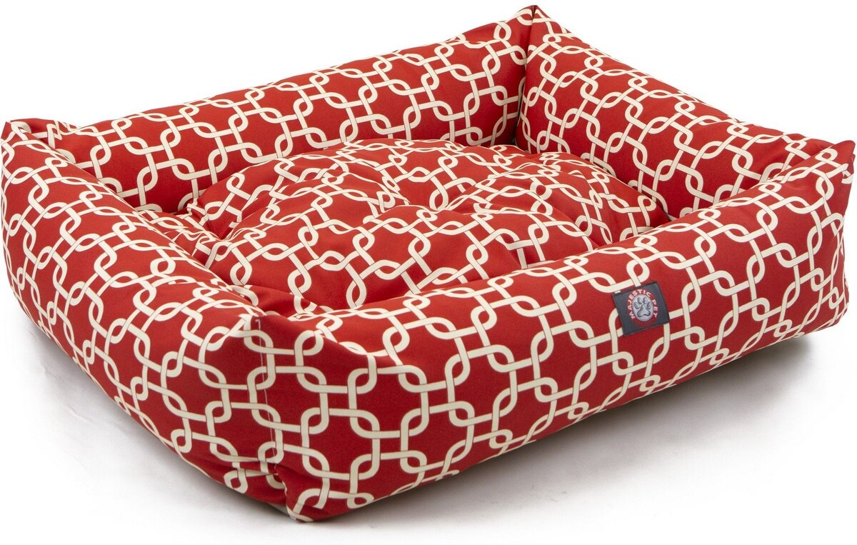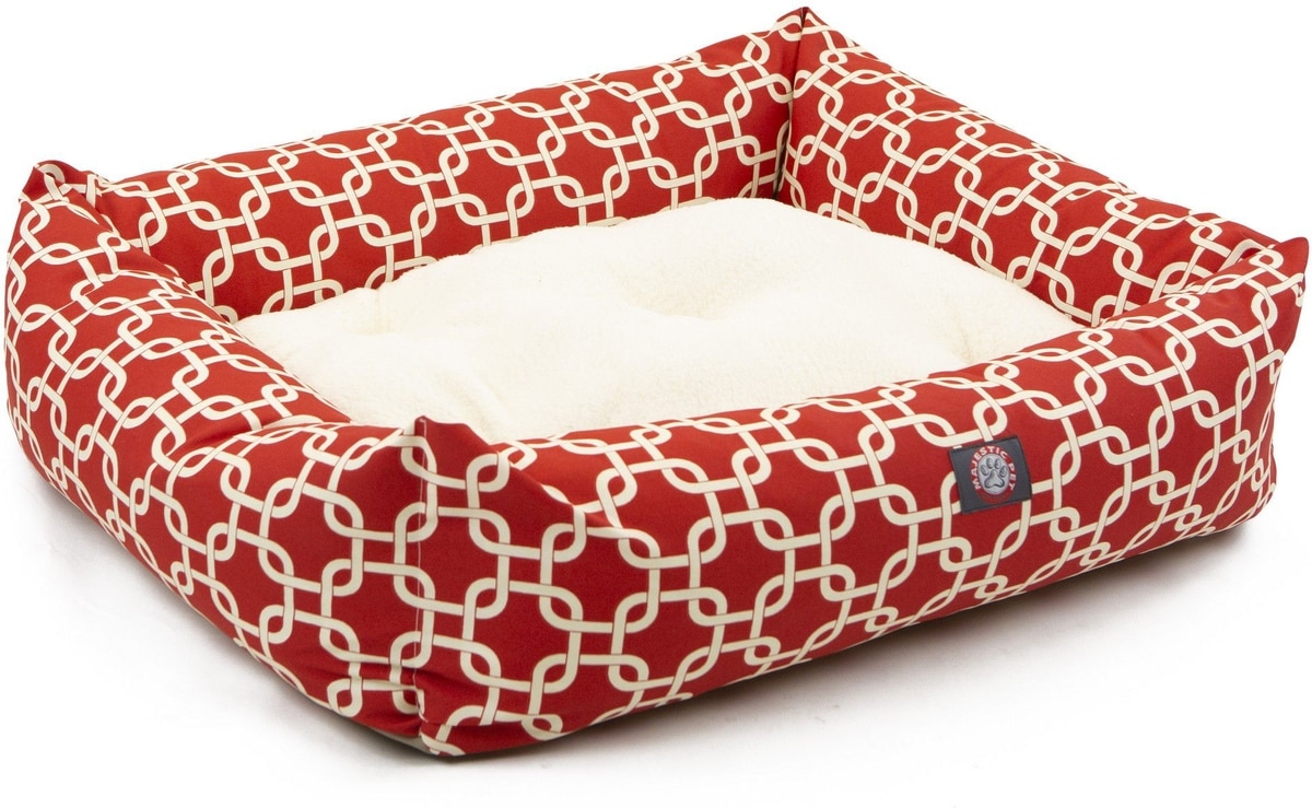 Majestic Pet Luxe Bagel Links Bolster Dog Bed with Removable Cover, Red, Large