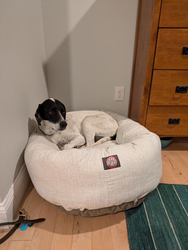 perfect for dogs who like to have a bolster to curl up in. Majestic Pet bagel beds are always my go to for new dog beds. Just super cushy and I like the cover comes