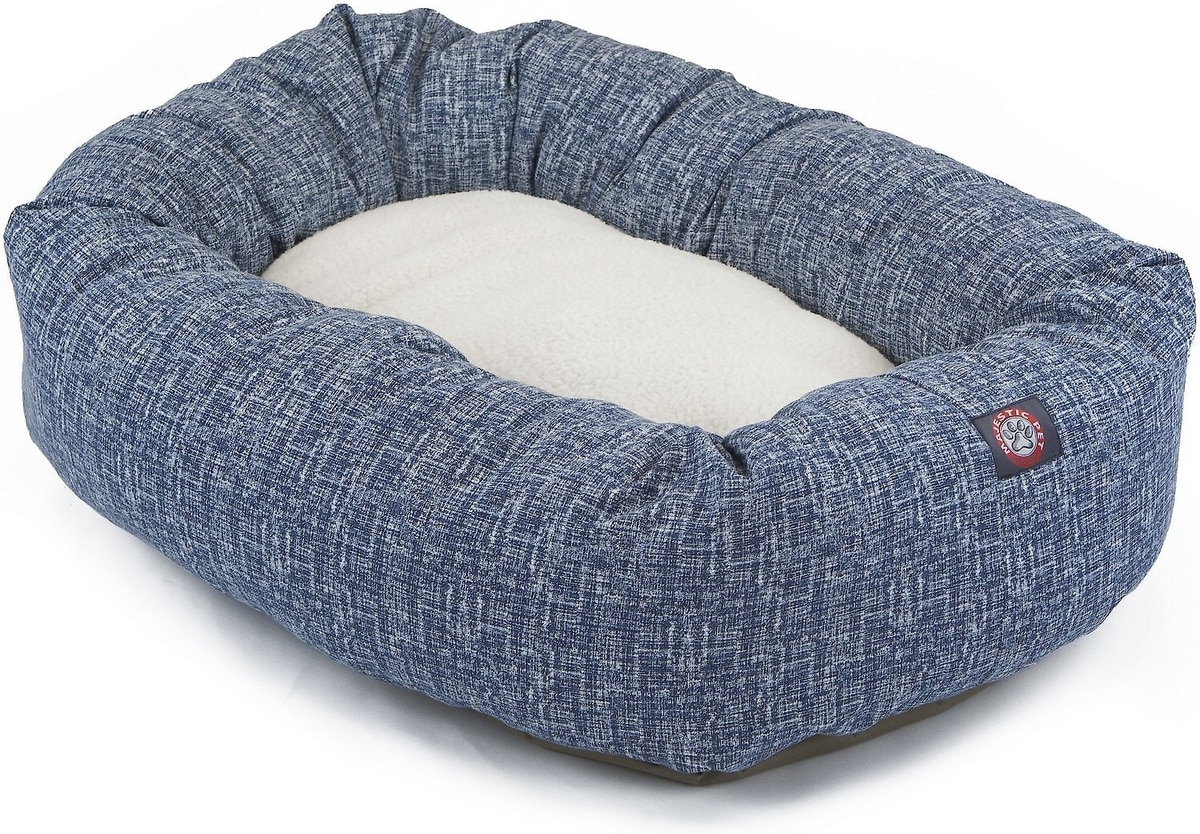 Majestic Pet Palette Heathered Sherpa Bagel Bolster Dog Bed, Navy Blue Denim, Large