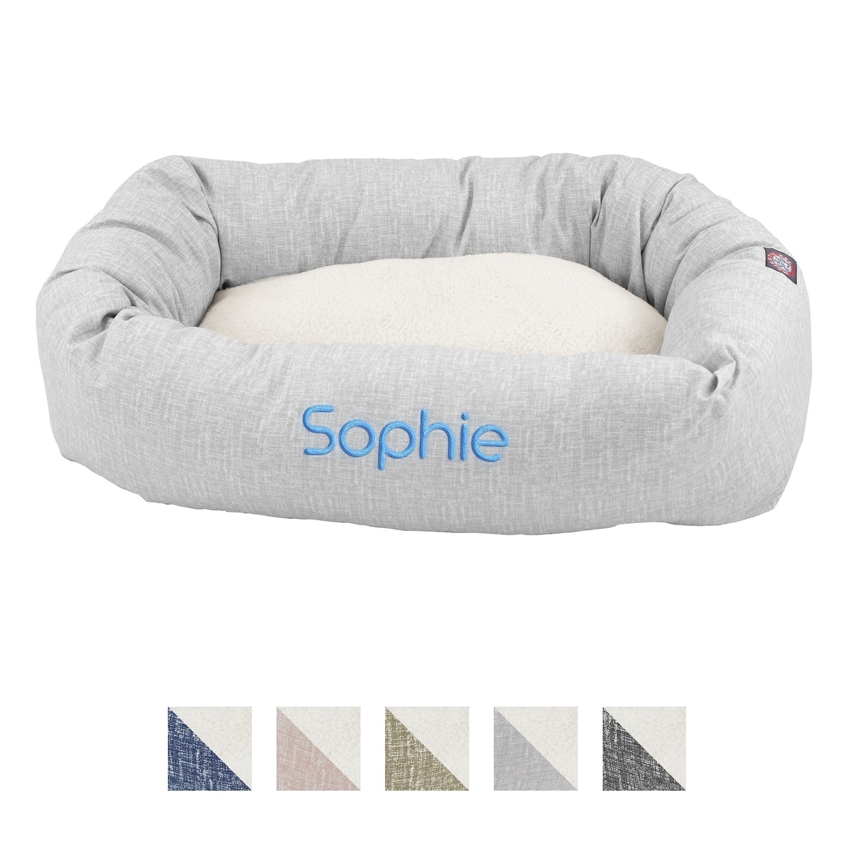 Majestic Pet Palette Heathered Sherpa Personalized Bagel Cat & Dog Bed, Gray, Large