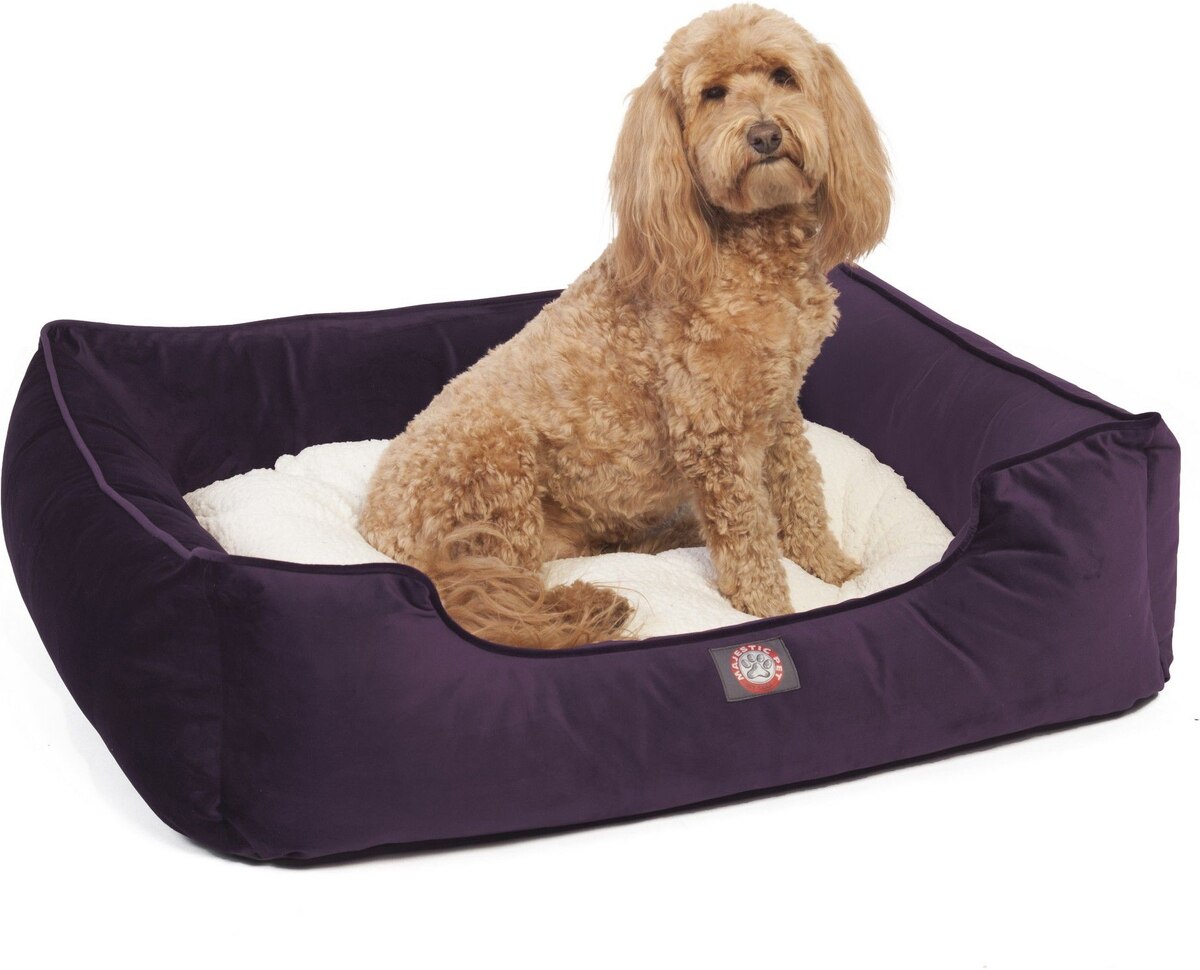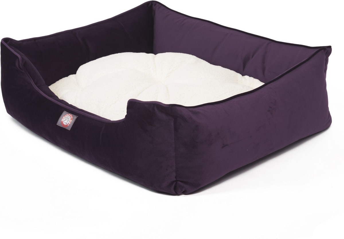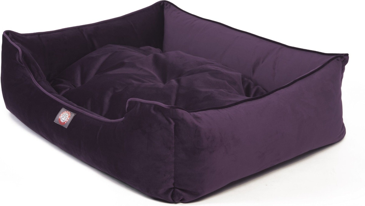 Majestic Pet Velvet Contemp Lounge Bolster Dog Bed with Removable Cover, Amethyst, Large