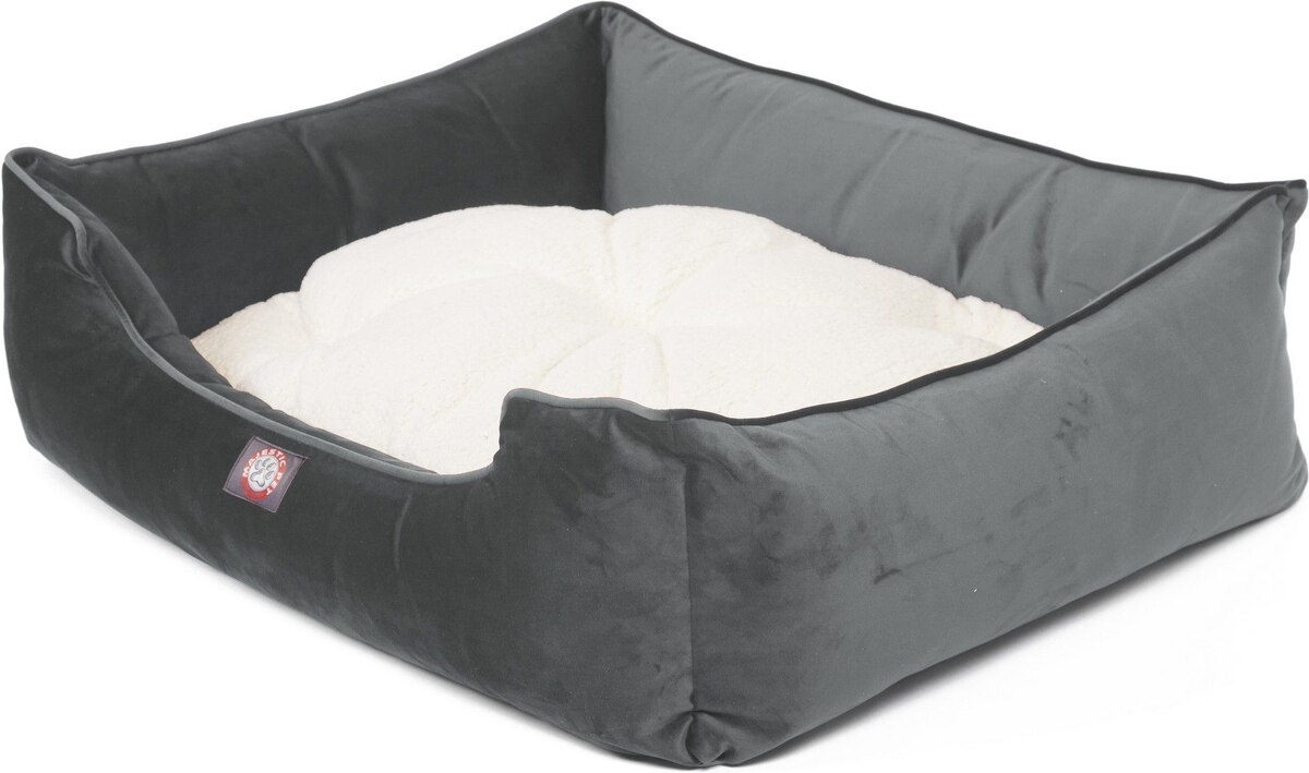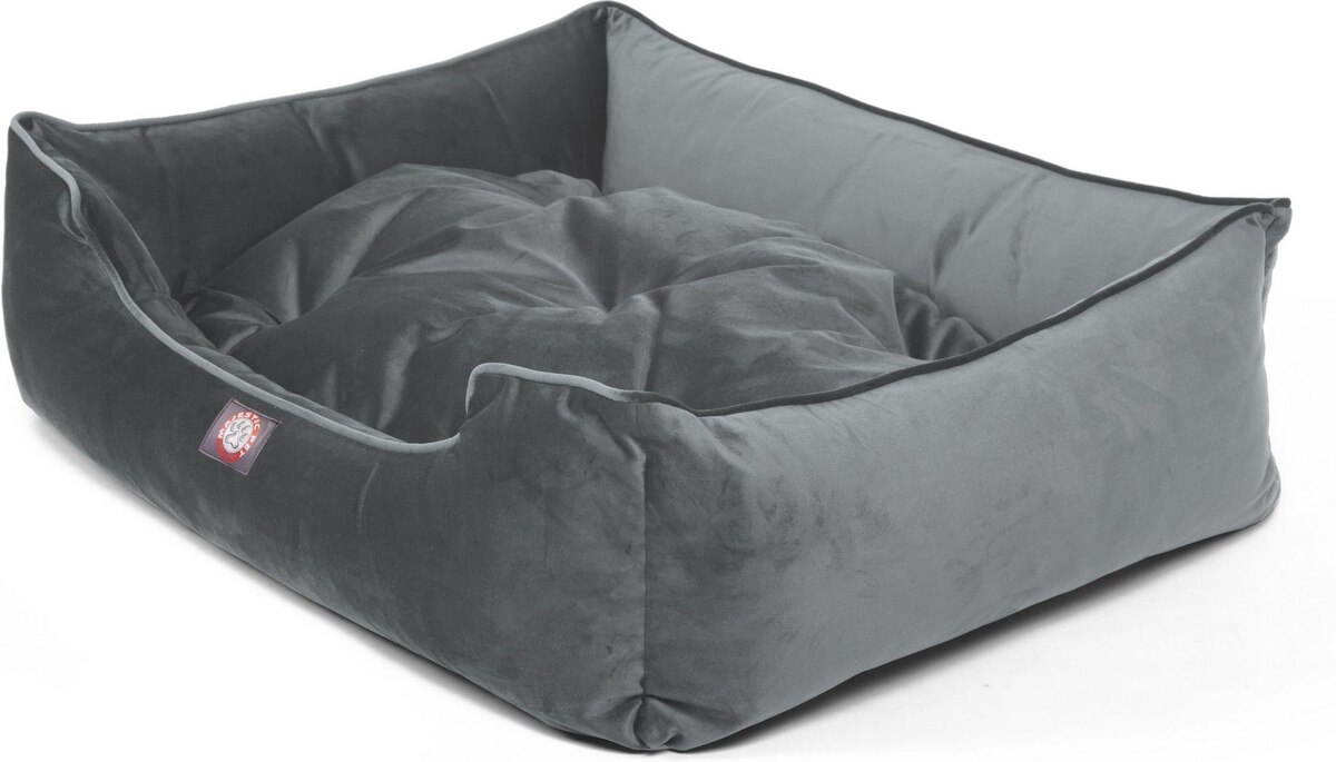 Majestic Pet Velvet Contemp Lounge Bolster Dog Bed with Removable Cover, Steel, Large