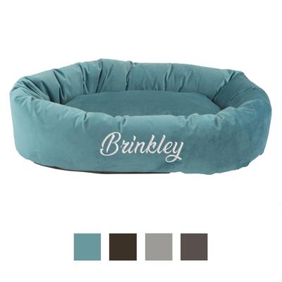 Majestic Pet Velvet Personalized Bagel Cat & Dog Bed, Turquoise, Medium
