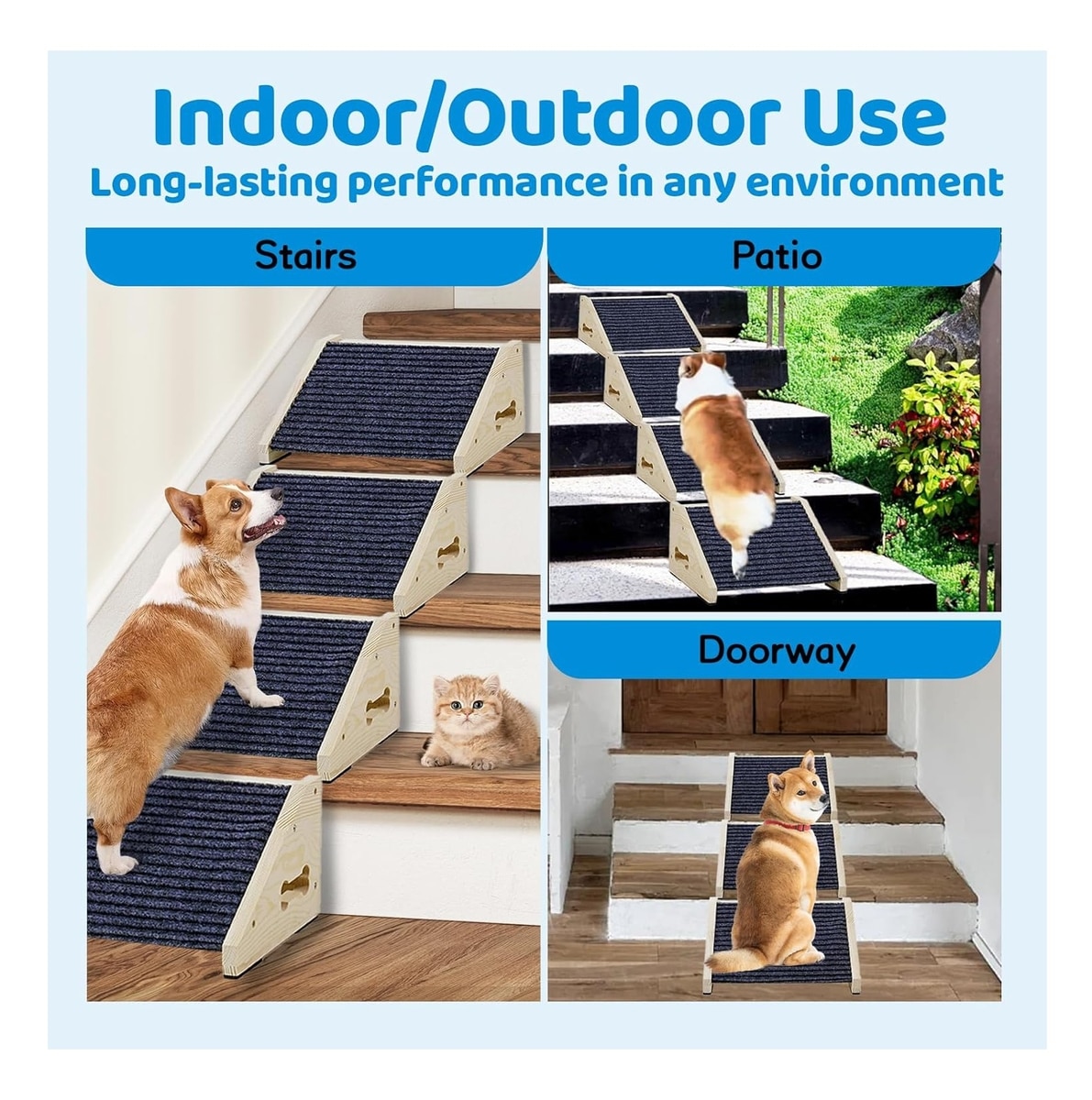 • This ramp is made of solid wood for reliable support with every step your pup takes.