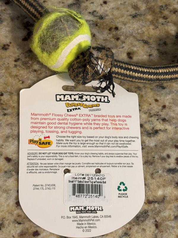 Mammoth Braided Tug with Tennis Ball for Dogs, Color Varies, Small