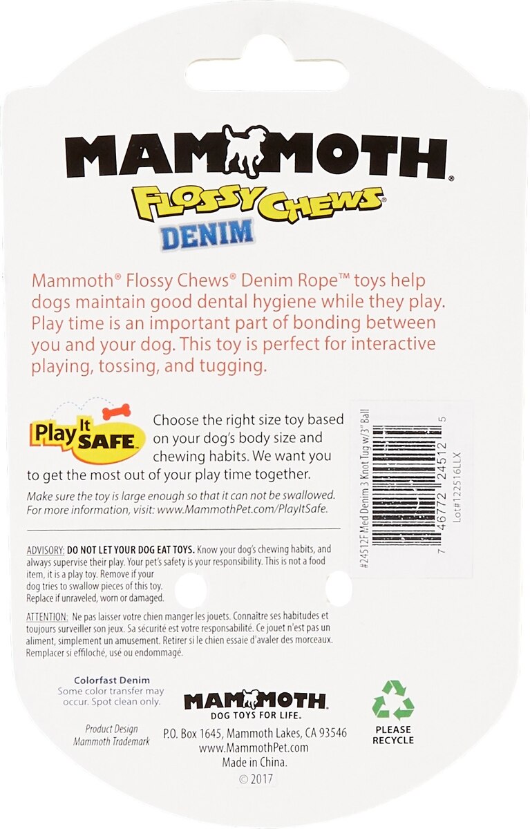 Mammoth Denim 3 Knot Rope Tug with Tennis Ball Dog Toy, Medium