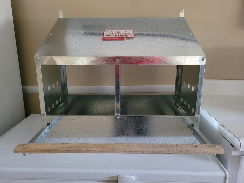 We have been using an old tote with a hole cut out as our nesting box, so this was a great upgrade! Overall a nice nesting but install was not the easiest. Pros: -There are two bottom pieces that come out for easy cleaning. -The steel that the chickens feet touch has been smoothed to avoid scratched feet/bumble foot. -The weight of this product is pretty light so it was easy to install in our coop. -We have a variety of small and large chickens that are all happy with their upgraded nesting box. -Nice ventilation to help with the heat in the summer months. Cons: -Our specific box showed up damaged. Anyone that has chickens knows that they make a huge mess so a little dent did not matter to us. -Putting the nesting box together was not easy. The black and white sheet of paper had very little indications on which way the parts belong. We got the product together, but step 4 and 5 took a couple tries getting the parts going in the right direction.