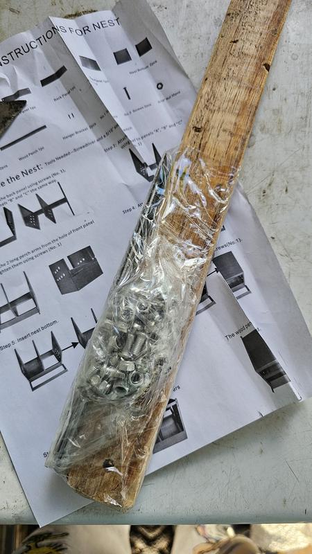 I just unboxed the product and put it together. The nesting box took me about 1 hour to put together with a phillips screwdriver and pliers to hold the lock nuts in place. Had I used my electric tools and nut driver the process would have went faster. This product was fairly simple to put together. The main pieces were labeled so that you know which piece goes where. My Walk Through Instructions: You start by gathering the side piece (A) and the back piece. You'll want to bolt the back piece onto A, then add the center piece marked (B), and then bolt on the other end piece (C). Next, bolt on the front. Making sure that the holes for the perch brackets line up right before attaching the front. Once the front piece is securely bolted on, place the top of the nesting box on and align the holes. At this point, add the hangers on the corner back ends, then work the bolts through and fasten with the lock nuts. Don't forget to secure the center bolt into place. After that secure the long perch rods to the inside of the box. Align them with the holes and bolt them onto the box. Then bolt on the short perch brackets onto the long perch rods. After that use the 2 long bolts to screw the wood perch onto the perch brackets. Place the 2 bottom pieces of the box inside the nesting box. Wahl-lah it's finished! The Things That I Like About This Nesting Box: The first thing that I like about this box is the fact that the perch can be folded up. I like that the perch has already been sanded down. This is important so that my girls will not get splitters in their feet. The second thing that I like about the box is that the bottom pieces can be popped out for easier cleaning. The third thing that I like about the box is that it is made with the best materials. Plus, the box can be wiped down easily when cleaning it. The fourth thing that I like is the fact that the perch is far enough out from the nesting box that "the nasties" won't litter the inside of the box. There is plenty of room for the girls to perch on in between. I also like that this will be an additional perch in the girls coop. You can never have enough perches! I would also like to add that the box has nice sized vent holes on the sides. So, my girls will have plenty of air circulating through the nesting box when they are inside it laying eggs. I absolutely love this product! I put it together myself, with old-school hand tools, and it was very simple. My feathered babies will love it too! π£π€π₯ππ