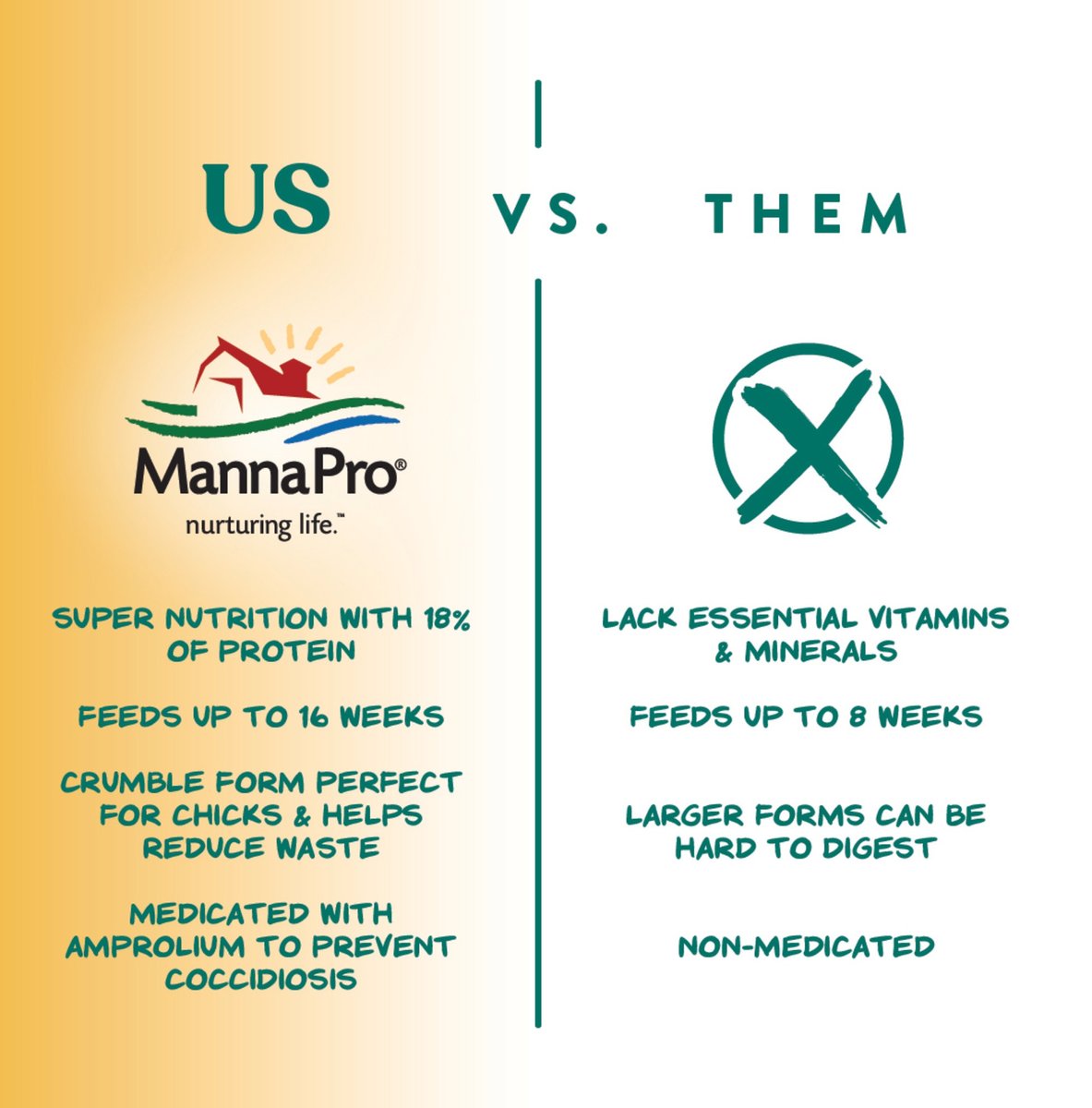 - Manna Pro Chick Starter Grower Medicated Crumbles Chicken Food, 5-lb bag$6.79 Chewy Price$7.99 List Price$6.45 Autoship Price