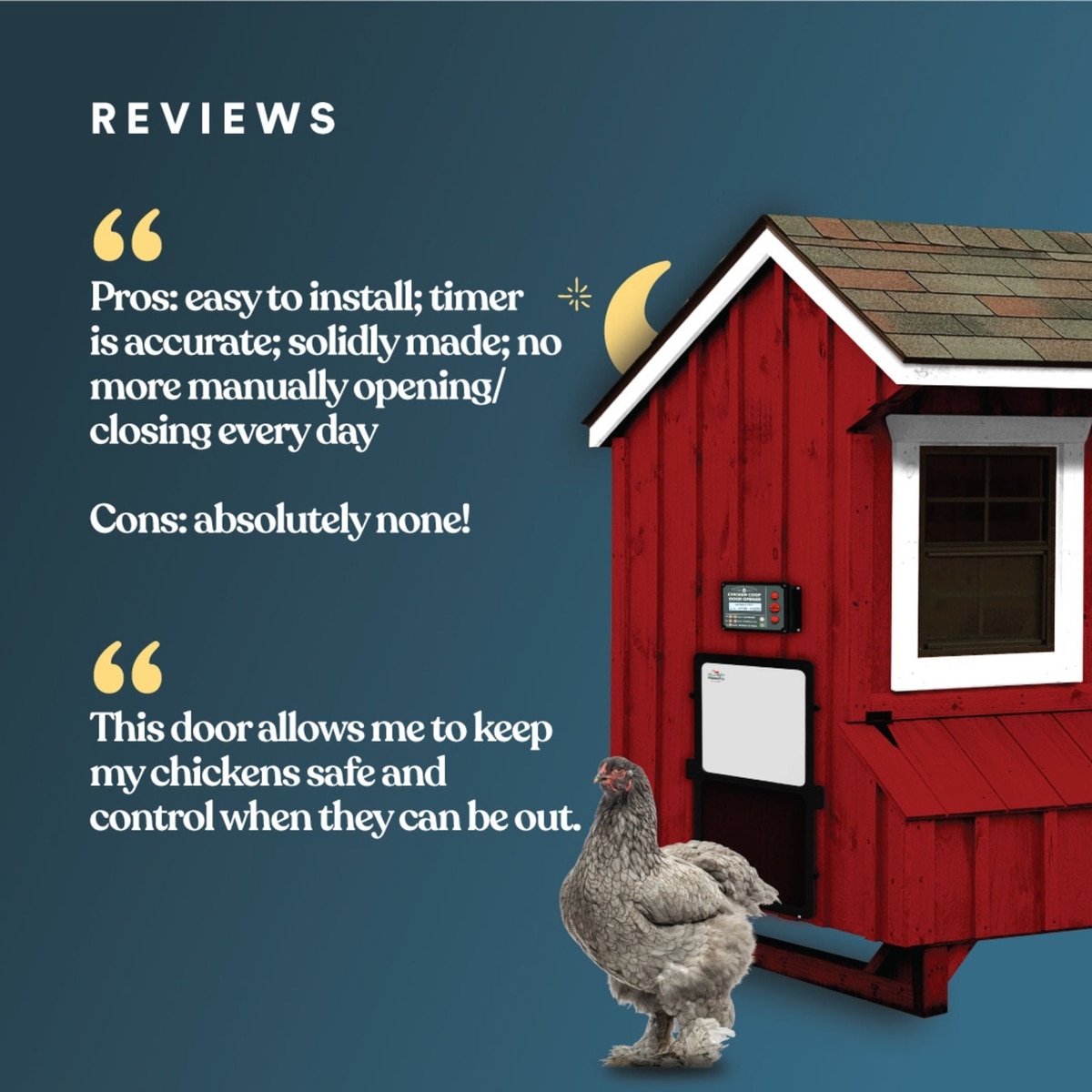 - Keep your chickens safe with this automatic coop door that boasts up to 6-months of battery life.