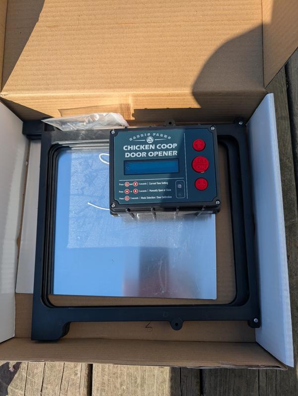An automatic coop door is something that makes life much more convenient when raising chickens. However, the tiny string that's responsible for pulling the door open doesn't inspire much confidence in longevity. I also worry about the bottom getting filled with shavings as the birds go in and out and getting blocked. Being in NW Minnesota, we installed this on the inside of the coop and programmed it for time instead of light. I don't think that the battery life will hold up to our cold winters and we would need to get the power cord adapter if we wanted to use it into fall weather much. However, it's easy to install and program which was nice!