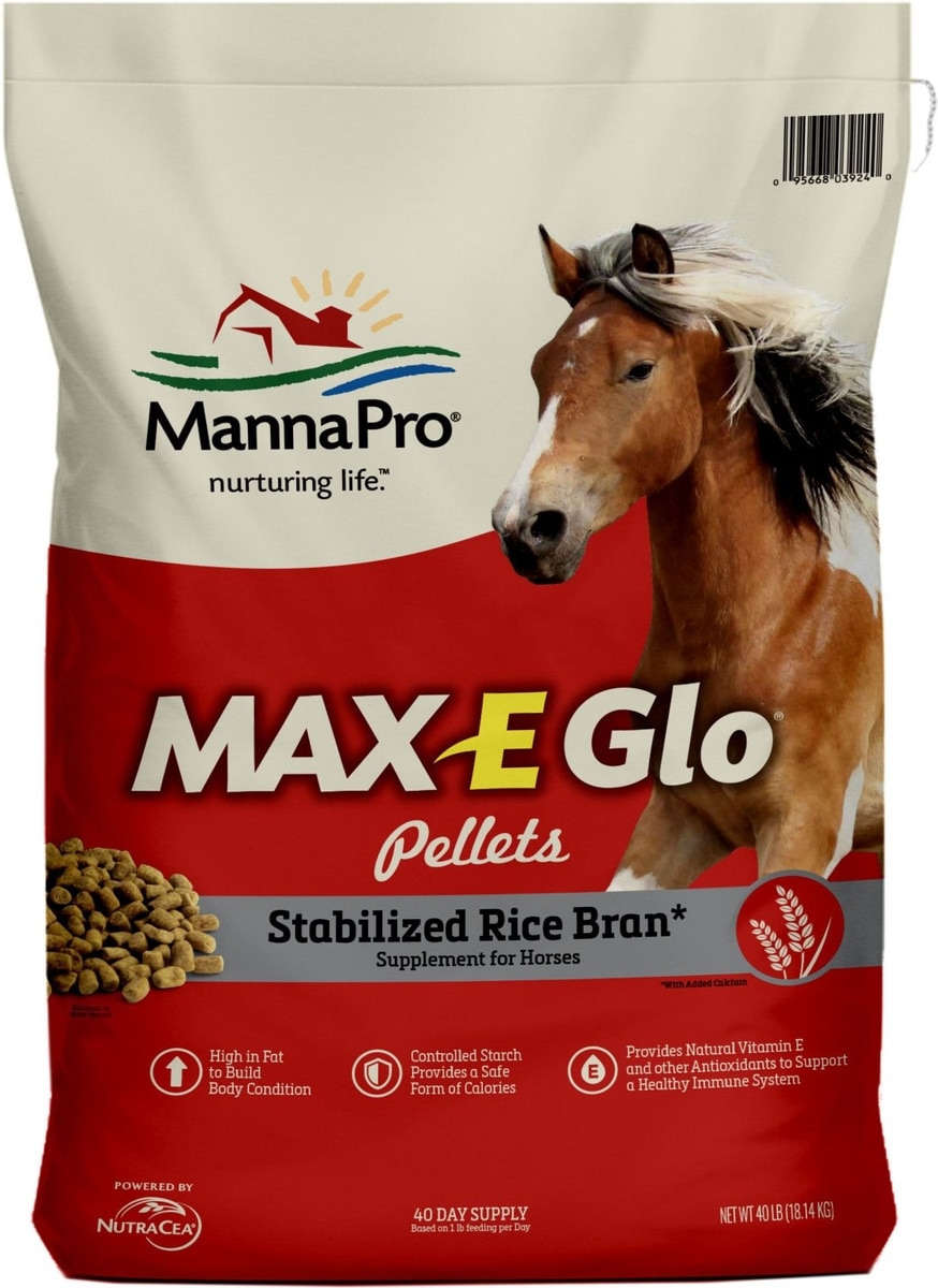 Manna Pro Max-E-Glo Stabilized Rice Bran Pellets Horse Supplement, 40-lb bag
