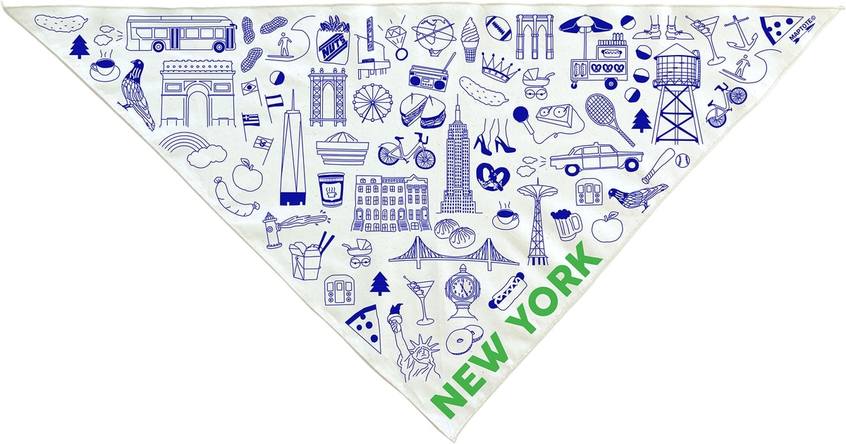 Maptote New York City Dog Bandana, Blue/Green, Large
